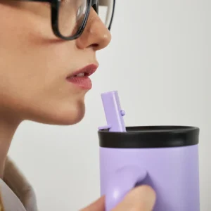 Καπάκι με ενσωματωμένο καλαμάκι, απόλυτα στεγανό, ώστε να μεταφέρεται εύκολα και να το έχετε πάντα μαζί σας.